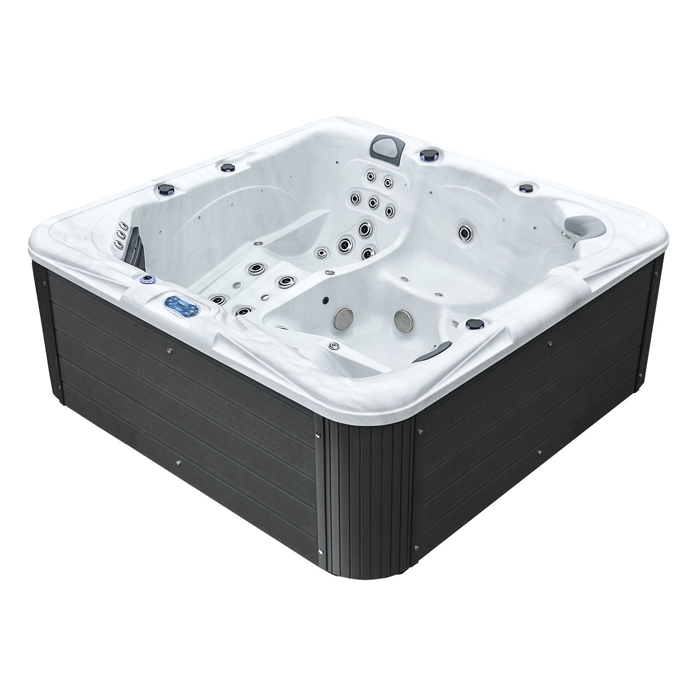 Entdecken Sie den neuen JACKSONVILLE - Ihr luxuriöser Outdoor Whirlpool für das ganze Jahr. Er bietet zwei komfortable Ganzkörper-Massagetherapieliegen und ausreichend Platz für insgesamt 5 Personen. Genießen Sie die wohltuende Wirkung der speziellen Nacken- und Schultermassagedüsen und lassen Sie sich von dem beruhigenden Wasserfall in die Tiefenentspannung begleiten. Ein weiteres Highlight ist das einstellbare Multicolor LED Licht, welches das Wasser in sämtlichen Farben des Regenbogens erstrahlen lässt. Abgerundet wird Ihr Whirlpool-Erlebnis durch eine Auswahl an verführerischen Aromen, die Sie in Traumwelten entführen.